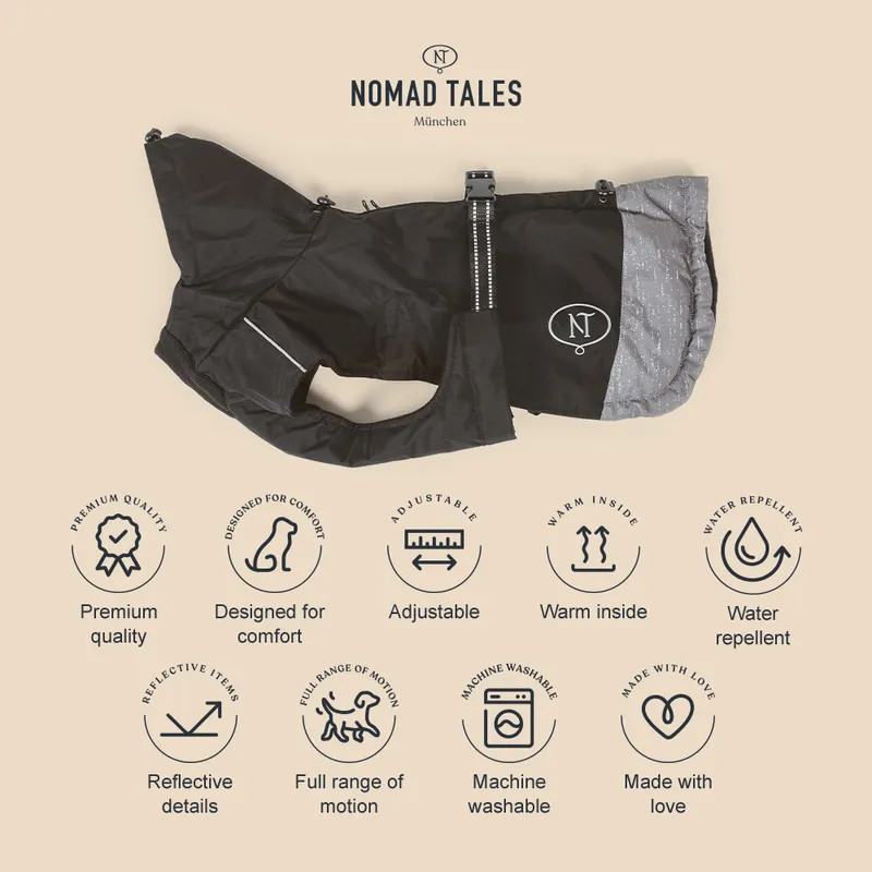 NOMAD TALES - Fekete-szürke téli kutyakabát 40 cm